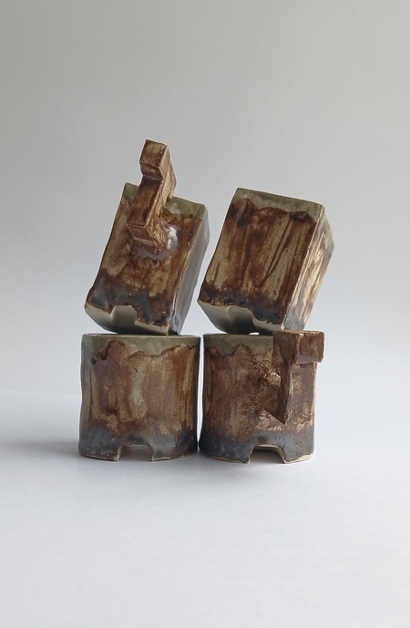 На курсе Изобретение глины я точно знала, какие хотела бы создать изделия в этом модуле и шла на вариатив с четкой идеей — серия кружек четкой прямоугольной формы, никаких лишних элементов или излишне ярких цветов. Геометричные формы были выбраны, потому что ассоциируются с покоем и «понятностью».