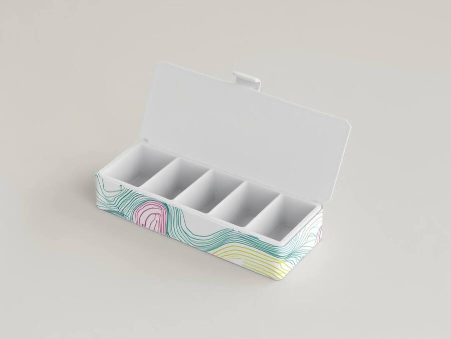 Таблетницы сгенерированы в Reve. Промт: Create pill boxes of different shapes on a white background, use pattern from the references.