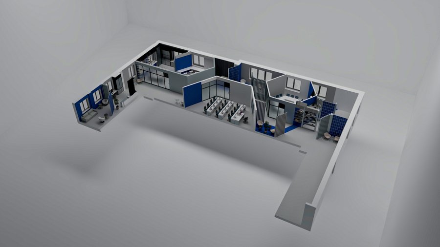 Концепция учебного кластера заложена в формообразовании пространства. За основу я взяла правильный шестиугольник, который в последствии модернизировала, чтобы придать учебному пространству больше динамики и избежать длинных коридоров и типовых планировок помещений