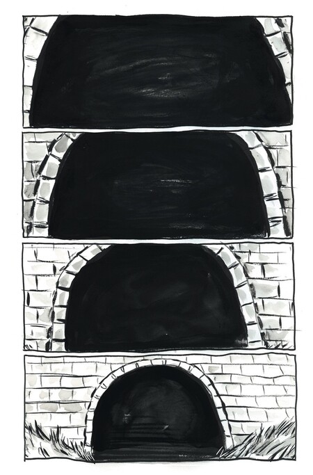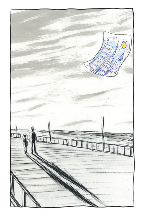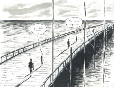 Простота и неаккуратность рисовки заметны в «Графстве Эссекс», где рассказывается история маленького и тихого городка. Автор показывает отрывки из жизни разных персонажей, переплетая их в общий сюжет и раскрывая темы семьи, детства и воспоминаний. Простую и личную историю подчеркивает визуальный стиль работы — в ней мало текста и не проработаны фоны, что вместе создает ощущение тишины города.