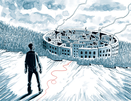 В «Лабиринте» действие сосредоточено как бы в двух мирах — реальном, в котором главный герой скорбит о потере дочери, и потустороннем, куда его приводят головоломки, которые любила Венди, и где он пытается ее найти. Комиксист разделяет два мира при помощи цветового решения — оттенков сепии в реальном мире и мистически синих цветах в потустороннем.