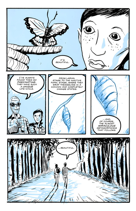 «Как бы мне ни хотелось рассказывать приземленные и человечные истории о „реальных людях“, я не хочу делать книгу о жизни. Формат комикса настолько богат возможностями визуально передавать идеи и эмоции, что было бы стыдно не использовать это. Так что мне нравится создавать действительно приземленную историю с очень реалистичным набором персонажей, но вместе с тем и тот странный и таинственный другой мир, находящийся прямо под поверхностью, который открывают для себя наши персонажи».3