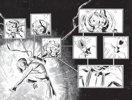 В отличие от кино, искусство комикса позволяет читателям самим определить, с какой скоростью читать текст, а вместе с этим определить и меру погруженности в историю и глубину рефлексии. А кроме того, художники комиксов получают повествовательные возможности благодаря дизайну страниц и композиции фреймов, что делает репрезентацию событий легко понимаемой.
