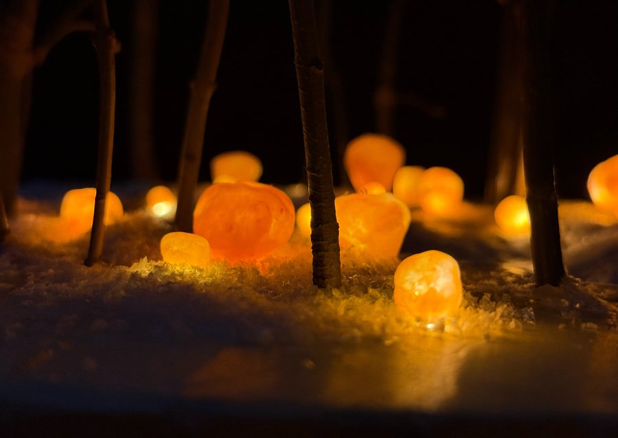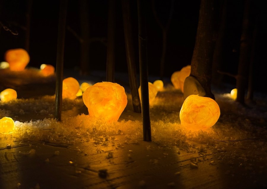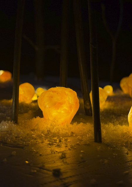 Инсталляция «PULSAR» — живая. Медленное, ритмичное раздувание и свечение создаёт эффект пульсации, словно усадьба и лес обладают единым сердцебиением. Это динамика жизни, смена времён года, бег времени.