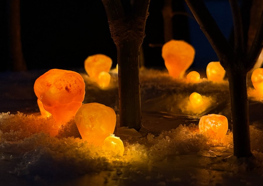 Для реализации инсталляции потребуется двухкомпонентный силикон и краситель, а также изготовление форм для световых тел.