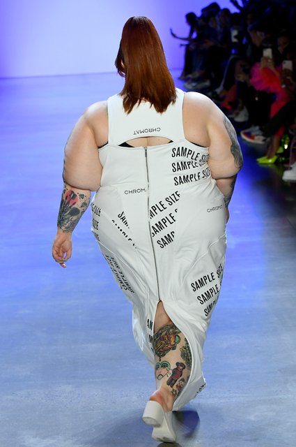 Модель Тесс Холлидей. Показ бренда Chromat. 2019 год
