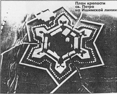 В июне 1752 года на берегу реки Ишим началось строительство крепости святого Петра (позднее — святых Петра и Павла), названной в честь праздника апостолов Петра и Павла, на который выпала дата основания — 29 июня. Крепость на Ишиме имела форму правильного шестиугольника площадью около 2-х гектаров и стеной длиной около 1,5 км. По его углам на равном расстоянии располагались бастионы, соединённые между собой куртинами. Бастионы, выходящие к реке, именовались Нагорный и Ишимский.