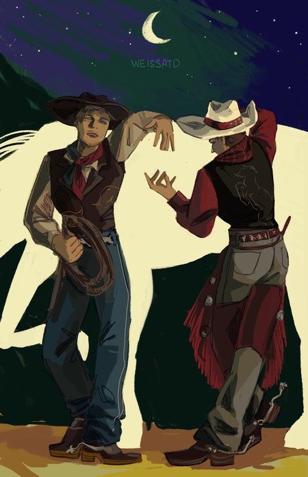 в последнее время мне захотелось больше углубиться в эстетику вестернов, поэтому я создала серию иллюстраций, посвященных ковбоям.