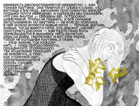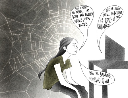 «Сеть» — это комикс-репортаж о психологе центра помощи «НеТерпи», работающем с темой домашнего насилия.