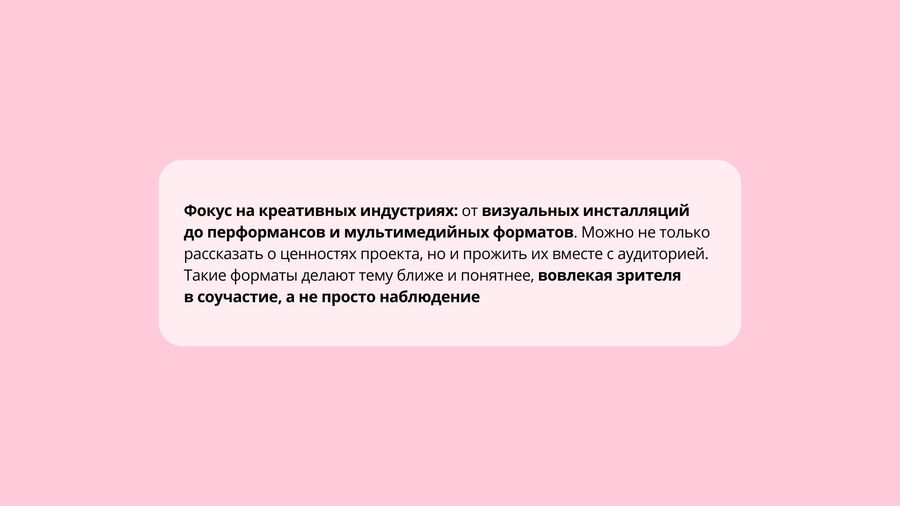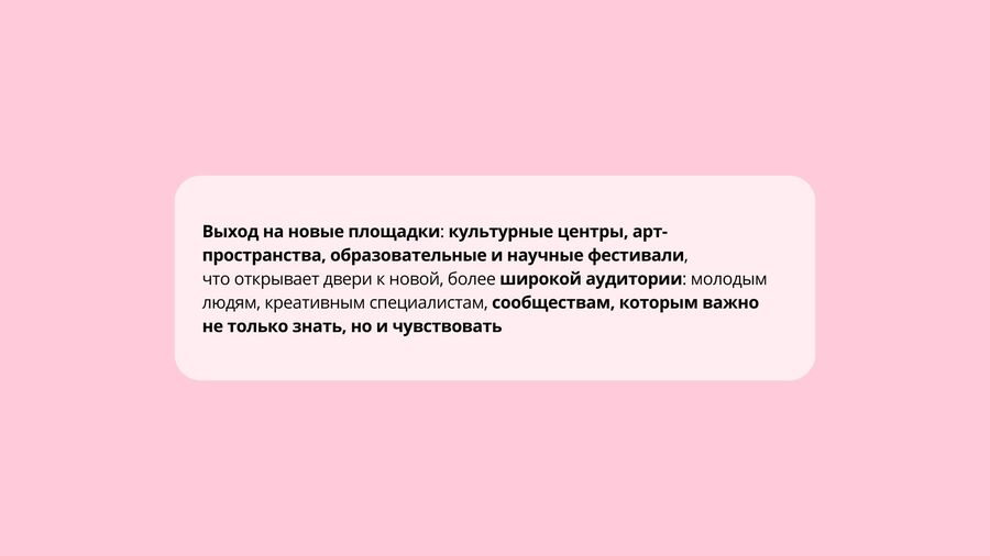 Работа над событийной программой включает в себя поиск и анализ релевантного мирового и отечественного опыта, поиск оптимальных форматов для презентации такой серьезной темы как РШМ и женское здоровье.