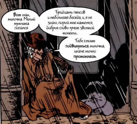 Порой Нил Гейман показывает бездомных не как фон или безликие массы, а как сложных индивидуальностей с собственными историями и проблемами. Через диалоги между персонажами раскрываются причины их нахождения в такой ситуации: экономическая нестабильность, потеря работы, семейные конфликты.