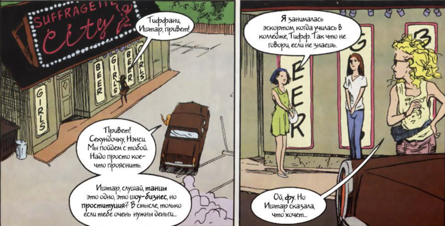 Интересно, что сразу в 2 выпусках проституция показана через призму божественных существ, где девушки, работающие в этой сфере сами по себе могущественные героини из древнегреческой и месопотамской мифологий.