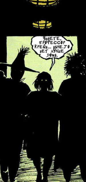 Потом Морфей, забрав свой артефакт, уводит Джона Ди «домой» — в психиатрическую больницу, на что тот говорит, что «нет ничего лучше дома». Это место действительно служит ему пристанищем и лучше всего подходит для такого человека как он.