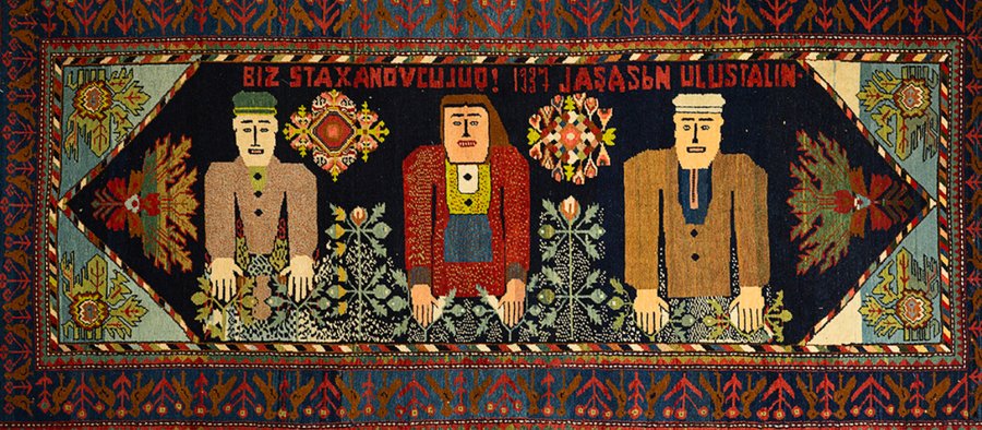 Экспонаты выставки «Эхо советского Азербайджана» показывают, как пропагандистские сюжеты интегрировались в национальную орнаментику. Локальные узоры соединялись с советскими символами — портретами вождей, флагами, праздничными колоннами. Такие ковры создавали модель «дружбы народов», адаптируя общесоюзную идеологию под культурный язык республик.
