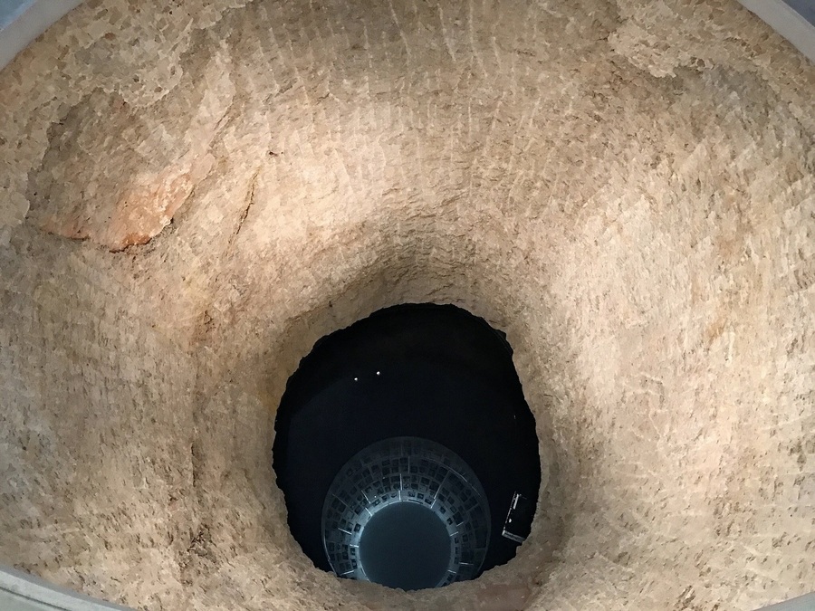 Форма Зала имен в Яд Вашем представляет собой длинный, вытянутый и высоко потолочный зал, что создает ощущение бесконечности и открытости.