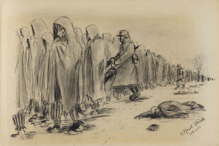 Художественный музей Яд ва-Шем Йехуда Бакон.Человек, возвративший мне веру в людей. Прага, 1945 Исраэль Альфред Глик. Марш смерти. 1945