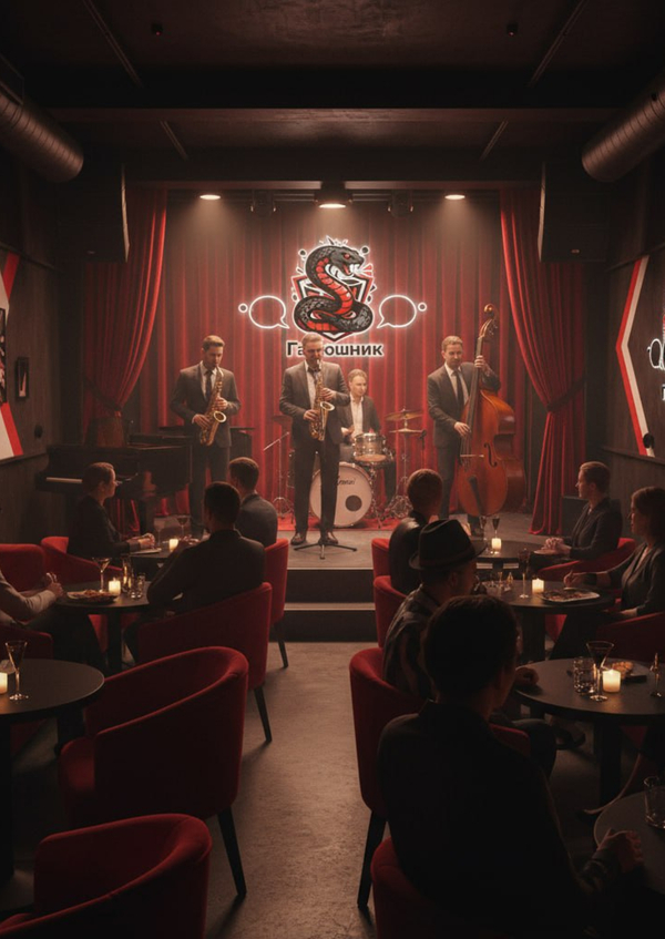 Промт: создай логотип для кафе по обсуждению сплетен с названием Гадюшник в черно-красном цвете с образом змеи и бабла. композиция с угловатыми краям, динамичная. В логотипе должна отображаться тематика кафе (обсуждение сплетен).