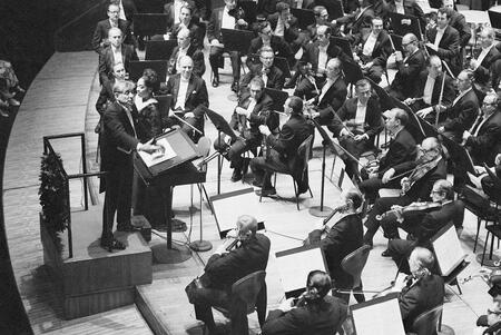 1. Леонард Бернстайн с Оркестром Консертгебау перед открытием Holland Festival, 1985 г. || 2. Леонард Бернстайн с Нью-Йоркским филармоническим оркестром, 1969 г.