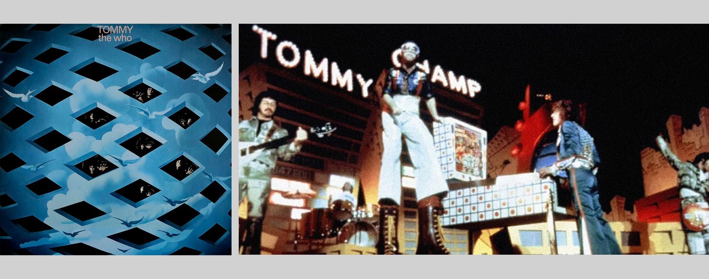 Обложка альбома «Tommy» The Who, 1969 г. (слева) Кадр из фильма «Томми», режиссер: Кен Рассел, 1975 г. (справа)