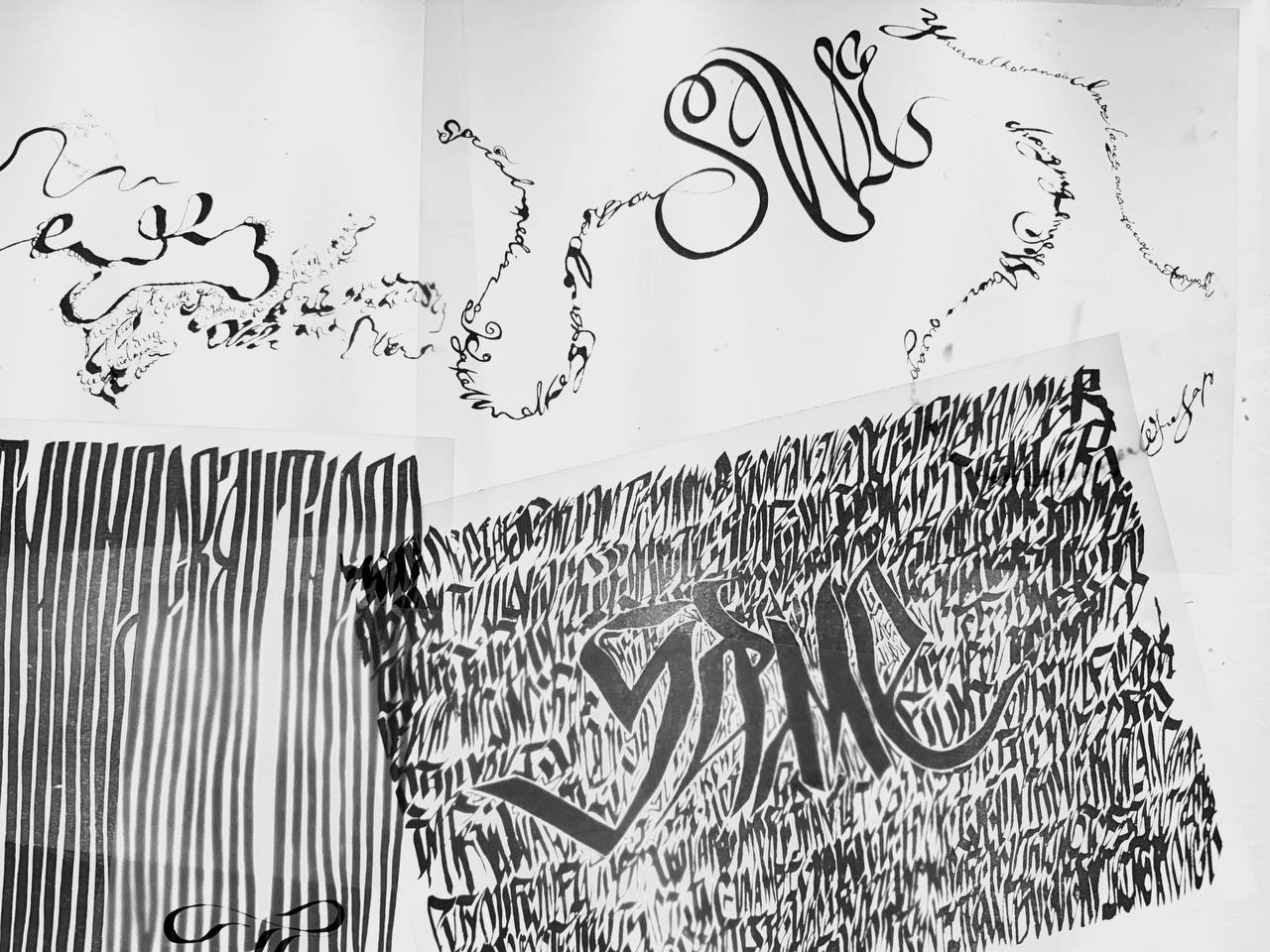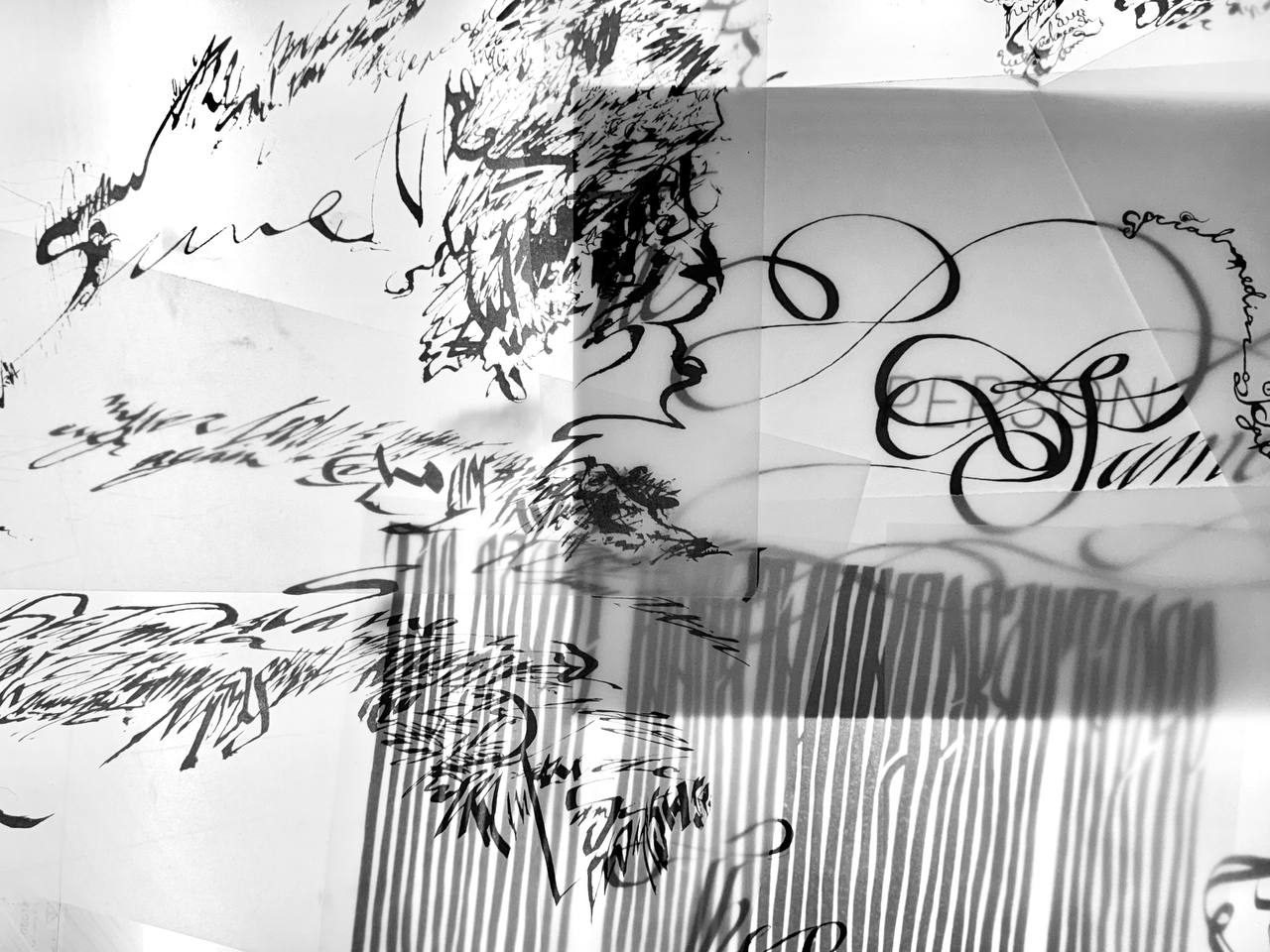 Одинаковый текст написан разными почерками, стилистика которых отсылает к некоторым знаковым интернет-эстетикам, и напечатан на кальке. Наложенные друг на друга прозрачные листы отражают сменяющиеся эстетики, примеряемые человеком, а также их последующее слияние и сочетание в одной личности.