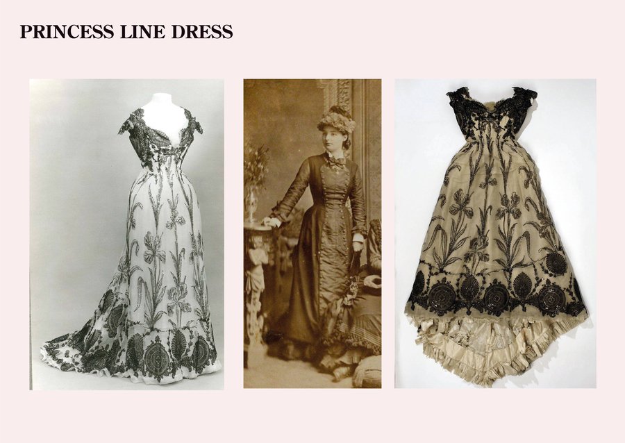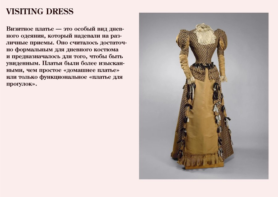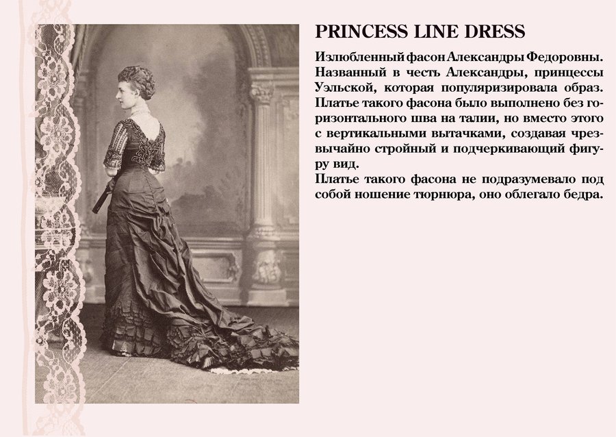 Платья для визитов фасона «принцессс» выполнялись в излюбленных оттенках императрицы, иногда с объёмными рукавами жиго.