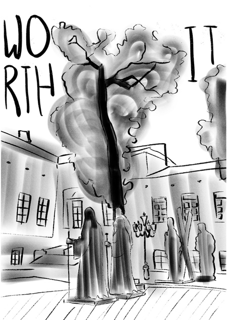 Worth it-это отдушина человека, который потерян и не понимает, ради чего вообще стоит жить. Я изобразила моменты, в которые поверила, что не все потеряно. Это чувство, когда видишь что-то настолько живое, но при этом повседневное, что понимаешь, что тебя окружает множество стоящих вещей, которым не придаешь значение.
