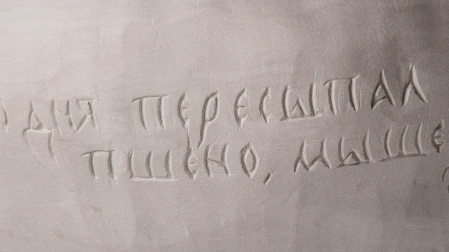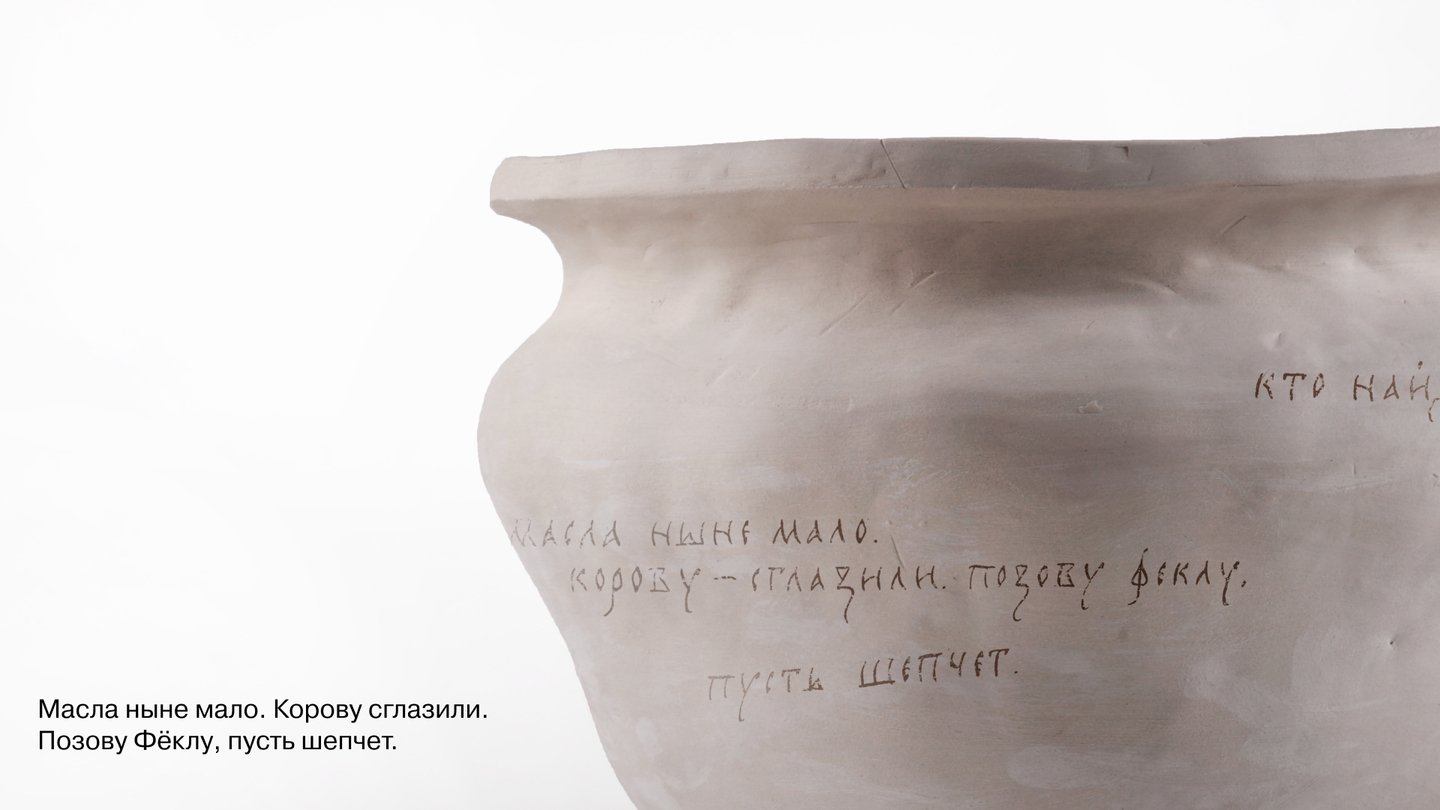 Полуустав На глиняных горшках выцарапаны бытовые заметки владельца о его жизни и чувствах.